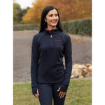 A quarter zip neck and thumbholes lend athletic wear style points, as does contrast colour LeMieux branding.