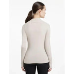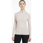 A beautiful mesh stripe on the arm and the side of the body is both cooling and flattering, while a ruched seam on the chest exudes grown-up style. Elevated details like a pretty quarter zip with a chiselled puller, glossy hot fix branding on the back on the neck and subtle branding on the sleeve make this base layer both feminine and glamorous.