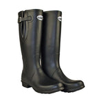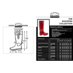 Made to last by expert bootmakers, the Rockfish Women's Neoprene Lined Tall Adjustable Calf Fit Gloss Wellington is made of 100% natural, hancrafted vulcanised rubber for ultimate durability and strength, with a resistance against horse urine. This boot has the added benefit of a 5mm neoprene lining for a warmer feel. Durable, quick dry polyester helps to make the boot easy to slip on and off and the adjustable calf tab allows for a customised fit. This internationally award winning boot is enhanced by the ergonomic fit to the ankle and instep, aided by the inclusion of a shock absorbing foam insole and foot bed. A cleated heel and grip bars across the outer sole provides grip, whilst the abrasion resistant rubber compound to the sole and heel assists in making these boots the ultimate choice.