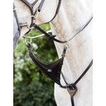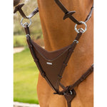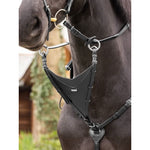 Can be used easily with any breastplate or martingale to prevent the horse from biting the martingale straps or raising it's head, and creates an even and fixed distance between the reins.