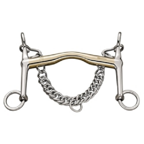 Brilliant for introducing a horse gently to a Weymouth bit. The slanting mouthpiece encourages the harmony between the rider’s hand and the horse’s mouth providing a relaxed and secure contact to the Weymouth.
