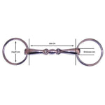 D-Ring double jointed snaffle 16 mm thickness with a Stainless steel mouth piece lies steady in the horse's mouth, gentle on the corners of the mouth allows direct pressure transmission on the tongue and lower jaw due to the fixed mouthpiece.