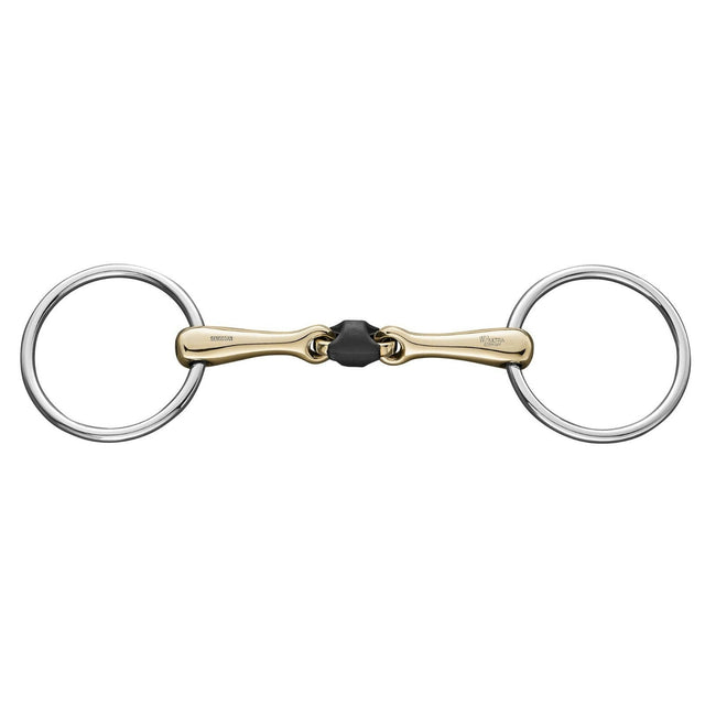 The bit is made of Sensogan-78 (the innovative material mix with reduced copper content and with manganese and zinc for a very positive influence on the horses satisfaction, motivation and willingness to perform).