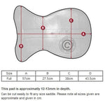 These pads are shaped and moulded to the saddle with a slightly thinner depth of gel running down the centre of the pad allowing the gel to sit up in the gullet rather than pushing down on the wither and spine.
