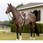 The sporty girth protection area lends subtle luxury and practical durability to the pad.
