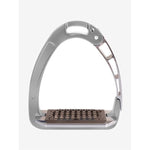 New premium model of the patented, laterally opening Arena stirrups, completely made of certified high-grade anodized aluminium and fitted with a stainless steel tread. Acavallo has carefully chosen and combined the materials used, following detailed research and comprehensive testing. The aluminium, besides giving the stirrup a sleek and elegant appearance, is lightweight and extremely durable, while the stainless steel protects the tread from corrosion, guaranteeing a long life of the product, too. The opening of the stress-actuated locking and release mechanism is located a centimetre higher from the tread to ensure that the foot cannot slip out laterally by mistake and to prevent sand and dirt from delaying the opening action of the arm in case of an emergency. Long holes in the tread prevent sand and dirt accumulations so that the gripping effect is not compromised and a five degree inclination of the tread helps riders to assume the correct posture, relieving tension in their ankles, calves, knees and hips.