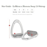 Mix, match and swap your stirrups to suit your mood! Designed for safety with style in mind, these multi-look stirrups feature double sided covers that can be swapped out for coloured covers in LeMieux's latest colours. Safety stirrups first and foremost, these feature a 90° opening arm and quick release mechanism to release the foot in case of need. A slightly oriented loop for the stirrup leather ensuring an optimum angle - ideal for stirrup regain. Nicely balanced weight and an ergonomic shape ensures comfort for your whole foot and lower leg. The footplate has a grip system to hold your boots secure, and is oriented at a 5° tilt to make keeping your heels down easy.