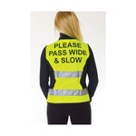 Stylish HyVIZ Waistcoat with PLEASE PASS WIDE & SLOW printed on the back.