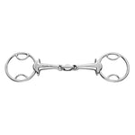 The MAX-Control is a double-jointed bit which, at a first glance, cannot be distinguished from other double-jointed full cheek snaffles.