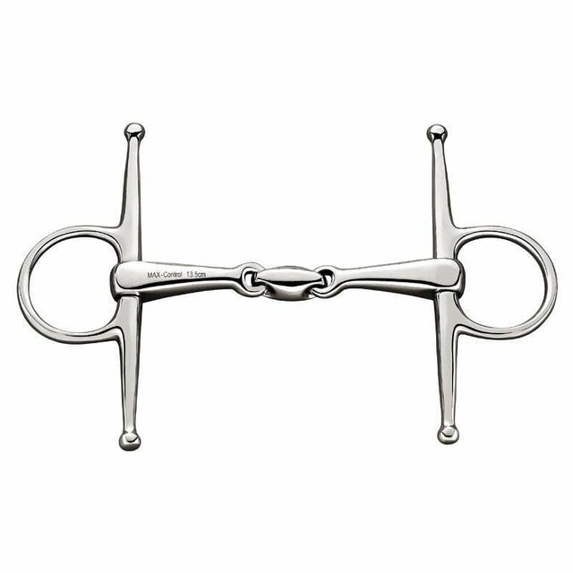 The MAX-Control is a double-jointed bit which, at a first glance, cannot be distinguished from other double-jointed full cheek snaffles.
