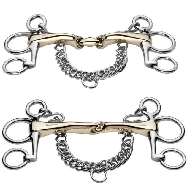 This bit has a unique oval shape design which widens the contact area of the mouthpiece on the horses tongue, without increased pressure.