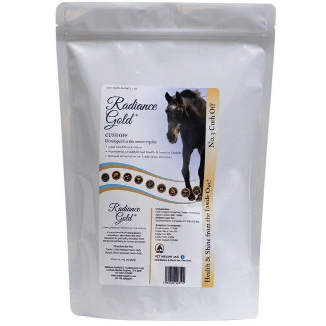 Radiance Gold Cush Off is specifically formulated for older horses and ponies, offering targeted nutritional support to address common challenges like coat changes and shifting energy levels. Powered by premium ingredients including Chaste Tree Berries (Agnus castus) and Milk Thistle, plus Actisaf pre/probiotics, this supplement aids digestibility, encourages healthy metabolic function, and supports overall wellbeing—helping your senior companion maintain comfort, vitality, and quality of life.
