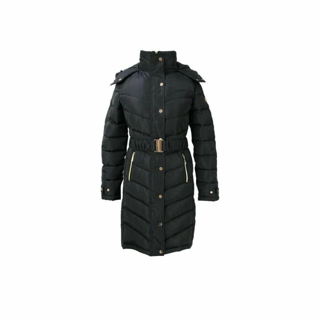 This gorgeous coat features a belt to not only add shape, but to secure the coat, and gold detailing finishes off this stylish item, including a two way front zip and zip to the back to allow the coat to also be used while riding and remain comfortable in the saddle.