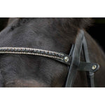 A beautiful browband with black and silver diamante crystals. With 'e'clasp browbands designed for use with freedom bridles / headpiece but can be used with most conventional bridles.