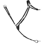 Comfort and security combine in our premium elasticated breastplate. Made in the softest leather that is ergonomically designed to mould around your horse’s chest and shoulders offering total comfort whilst securely maintaining saddle position. With removeable martingale attachments and quick release triggers to girth and saddle.