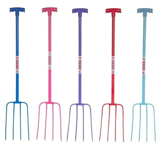 The 4 Prong Manure Fork T-Handle is designed with 4 strong steel tines and a well-balanced shaft, making this the perfect tool for getting the job done quickly.