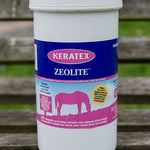 Keratex Zeolite™ is a mineral-based powder that can be added to hard feed or sprinkled over hay. It is a 100% naturally occurring mineral clay, which horses and other animals forage for and can access in the wild. It acts by detoxing while simultaneously trapping the maximum amount of nutrients available in normal feeds and supplements for the benefit of the horse.