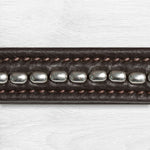 Made of extremely soft leather with a soft padded crownpiece. A Professional cut-back design for more ear comfort silver-coloured metal beads to the browband. The width of noseband for Cob and Full is 32mm. The noseband can be buckled on both sides with chrome buckles and web reins included.