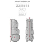 Classical style with cutting edge protection. These leather tendon boots are made from top-quality soft leather that moulds beautifully to the leg. The stitching detail defines the key anatomic sections whilst the soft contoured top is cut back to allow no restriction on the tendon when jumping. Designed with low friction EVA lining these boots give style, performance and function. Double lock velcro straps ensure the perfect fit and adjustability.