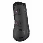 Lightweight shock resistant shell is anatomically moulded to support the fetlock and tendon.