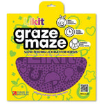 The Likit Graze Maze is a durable rubber lick mat that can be used to help relieve boredom, provide a distraction, or simply to slow the rate of feeding. Use in the bottom of a feed bucket as a slow-feeder or spread a layer of our yummy Likit Graze Paste on the mat to act as the ‘glue’ on which to sprinkle feed and treats to create a delicious grazing plate for your horse. The Likit Graze Maze is also suitable for freezing so why not make a horse ice lolly!