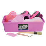 Give your horse a lovely gift with a complete grooming kit containing a Body Brush, Dandy Brush, Hoof Oil Brush, Dog Bone Sponge, Hoof Pick, Mane Comb, Plastic Curry Comb, and a Synthetic Curry Comb.