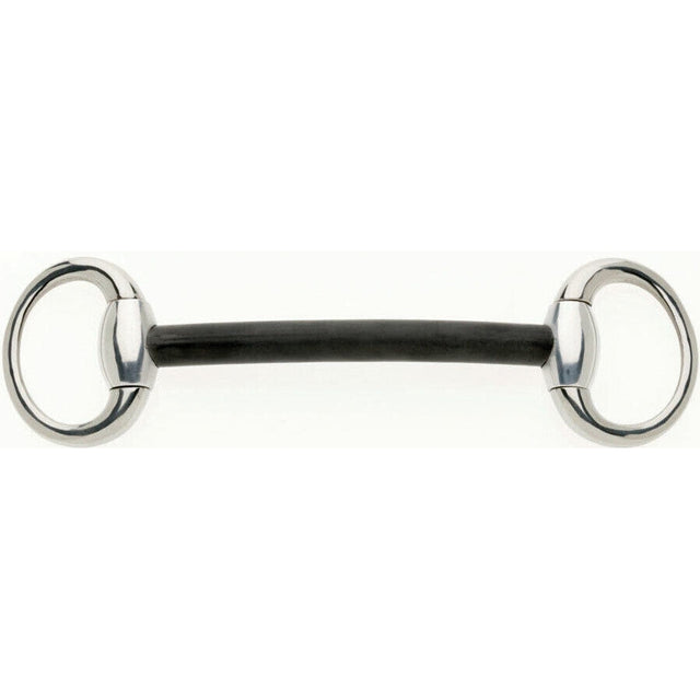 The nylon Mullen Mouth Eggbutt Snaffle is curved slightly to provide room for the tongue making it a reasonably gentle bit with no nutcracker action.
