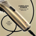 The Wahl Super Groom cord/cordless dog clipper can be used without the cord offering freedom of movement with a 100 minute cordless run time, alternatively use with the cord when the charge is low. Features a quick charge option that will provide you with enough battery life for touch ups and also has a clear LED battery strength indicator which lets you know when your clipper is fully charged.