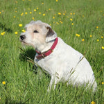 • Padded leather dog collar with soft plaited cotton detailing on the outside.