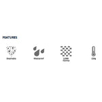 Hydrostatic pressure tested to 2000mm plus. Moisture vapor tested to 3000g/m2 plus.