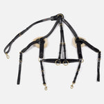 The Valencia PRO 5-Point Breastplate blends luxury and performance – crafted from European leather with sheepskin pads, elastic inserts, and brass hardware for comfort and stability.