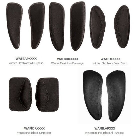 Wintec Flexiblocs enable you to customise the support offered. Tailor the support for your individual riding position by selecting your preferred size and adhering to the Velcro on the under flap of your saddle. We recommend moving the Flexiblocs up, down and on an angle until you are happy with level of support offered.